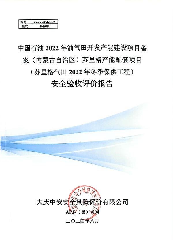 中國(guó)石油2022年油氣田開發(fā)產(chǎn)能建設(shè)項(xiàng)目備案(內(nèi)蒙古自治區(qū))蘇里格產(chǎn)能配套項(xiàng)目(蘇里格氣田2022年冬季保供工程)安全驗(yàn)收評(píng)價(jià) |