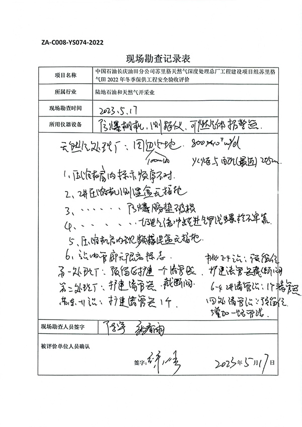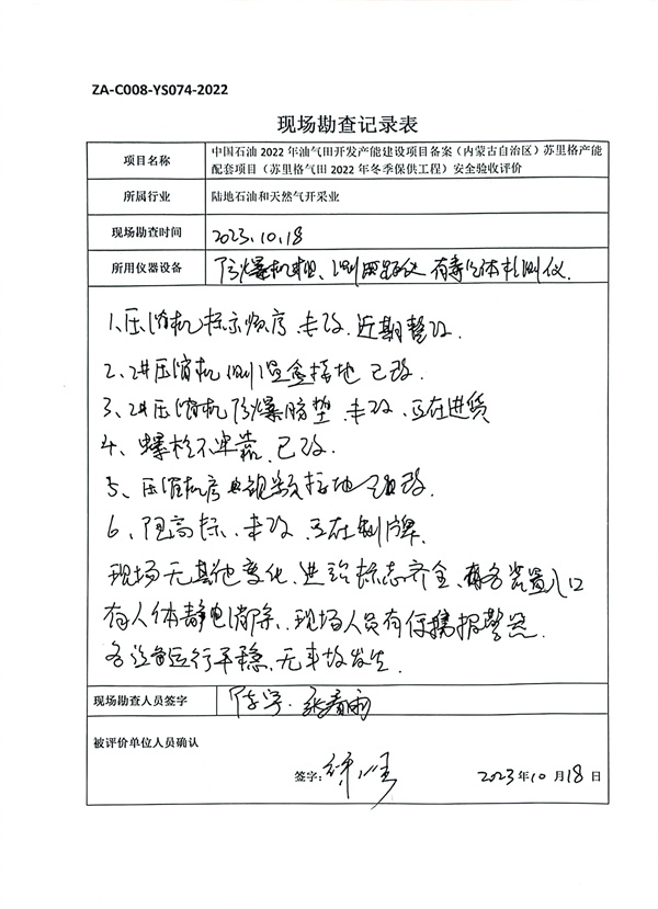 中國(guó)石油2022年油氣田開發(fā)產(chǎn)能建設(shè)項(xiàng)目備案(內(nèi)蒙古自治區(qū))蘇里格產(chǎn)能配套項(xiàng)目(蘇里格氣田2022年冬季保供工程)安全設(shè)施設(shè)置和運(yùn)行符合安全生產(chǎn)要求,試運(yùn)行情況良好,安全生產(chǎn)管理有效,具備安全驗(yàn)收的條件。 |