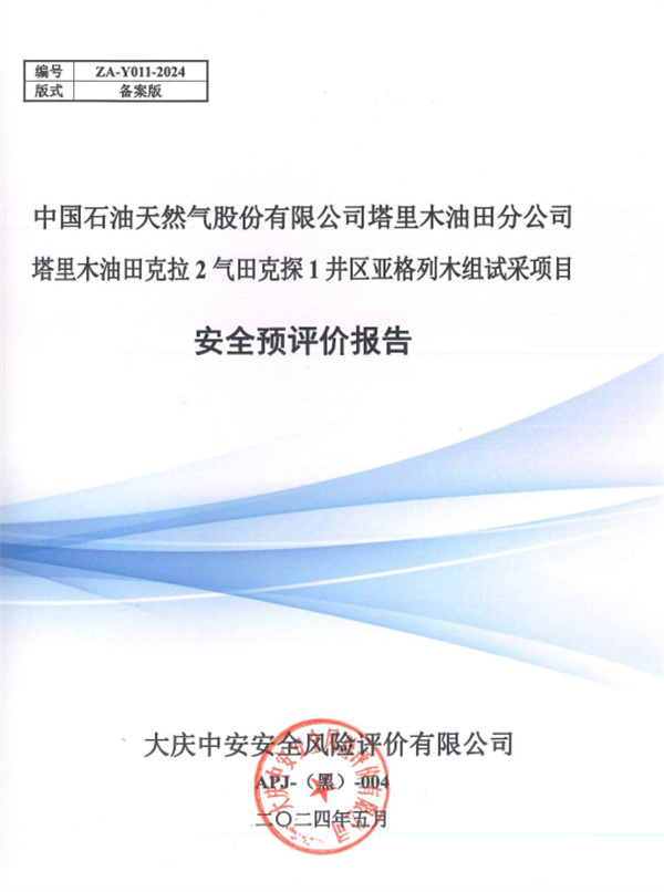 中國(guó)石油天然氣股份有限公司塔里木油田分公司塔里木油田克拉2氣田克探1井區(qū)亞格列木組試采項(xiàng)目安全預(yù)評(píng)價(jià)報(bào)告